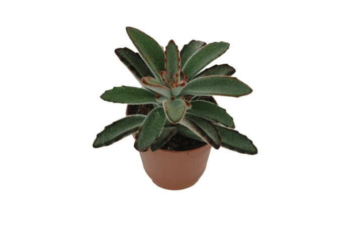 Kalanchoe tomentosa 'Pandapflanze' ist eine attraktive Sukkulente aus der Familie der Dickblattgewächse (Crassulaceae), die ihren Ursprung in Madagaskar hat. Diese Pflanze wird in einem kleinen Topf angeboten und erreicht eine Wuchshöhe von bis zu 45 cm. Sie zeichnet sich durch ihre dicken, fleischigen Blätter aus, die eine weiche, samtige Oberfläche haben und eine silbergrüne Farbe mit dunkelbraunen Rändern aufweisen.