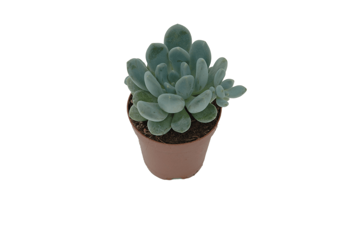 Pachyphytum oviferum 'Blue' ist eine attraktive Sukkulente aus der Familie der Dickblattgewächse (Crassulaceae), die ihren Ursprung in Mexiko hat. Diese Pflanze wird in einem kleinen Topf angeboten und erreicht eine Wuchshöhe von bis zu 18 cm. Sie zeichnet sich durch ihre dicken, fleischigen Blätter aus, die eine auffällige bläuliche bis grünlich-blaue Farbe haben und eine leicht pudrige Oberfläche aufweisen.